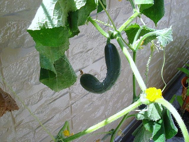 赤メ隊員より譲り受け、ベランダで栽培しとった女子便きゅうりこと
