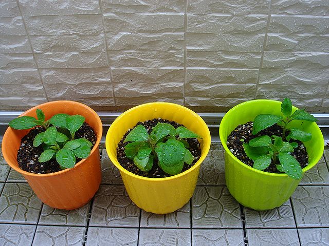 都内某所オフィスビルの日当たり良好女子トイレで、小さなポリポットでしっかりと育ち