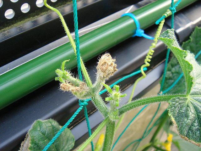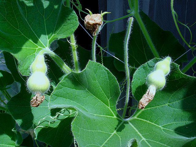 雌花は枝(子蔓・孫蔓・曾孫蔓)の第1~3節に着いて