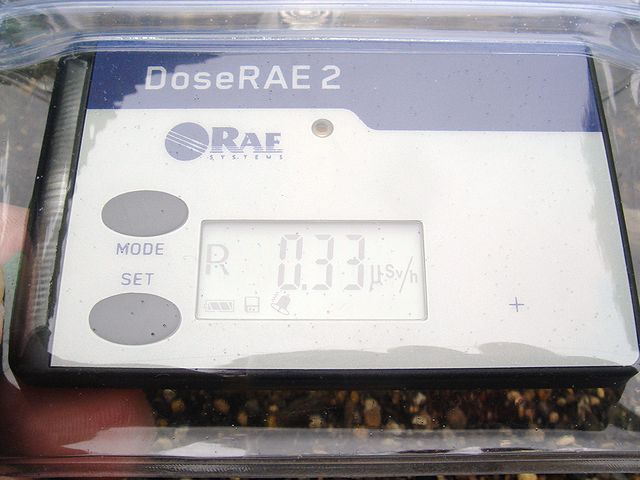 画像は、小畑の上、高さ1cmでの値。0.33μSv/h