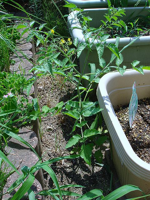 そして、トマト栽培したことのないグリーンカーテン栽培用の花壇脇から。