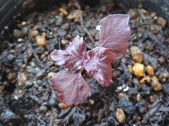 ここに来てちょっと伸び始めましたが、寒さのせいか下葉が赤く変色しとります。