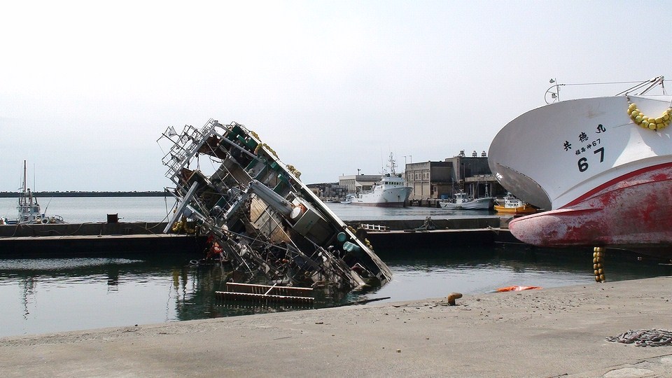 いわきの海外線地区、津波の爪痕。