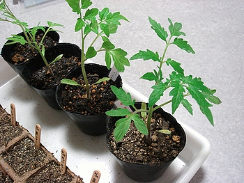 しっかり生きてた大玉トマト・麗夏とミニトマト(多分、キャロルツリー)の苗。