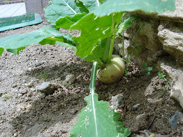 こっちは完全に水不足で、完全無欠の萎びっぷりの大根。