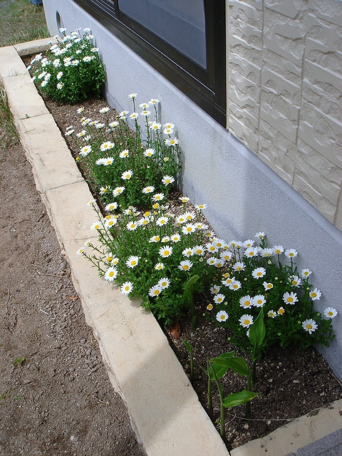 和室前の花壇は、いつの間にかノースポール(かな?)が群生し、
