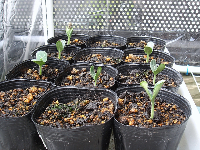 2、3日前まで、発芽もイマイチだったウチ種蒔きのひょうたん各種。