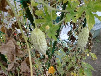 撤収を察知し次々と生りだす白ゴーヤー。