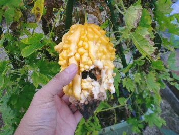 ”ひでぶっ”には程遠い、グズグズ、ズブズブの完熟ゴーヤー(左上)と