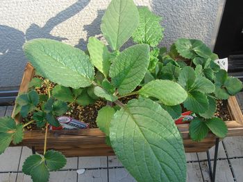 ベランダにあった各種いちご寄せ植えコンテナを屋外へ移動。