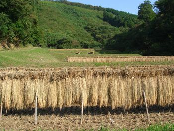 昨日、ハニーの実家から先日稲刈りして、はせ掛けした稲(こーゆーの→)が