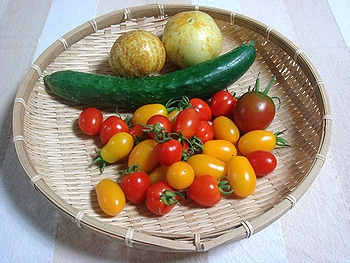 メロン1株を残して、きゅうり、ミニQ、ミニきゅうり・サラ、レモンキュウリ
