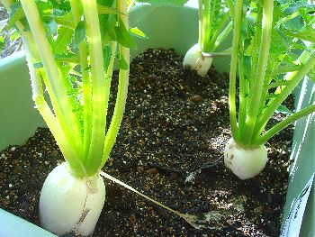 プランターのおまけだった青首大根・青味。